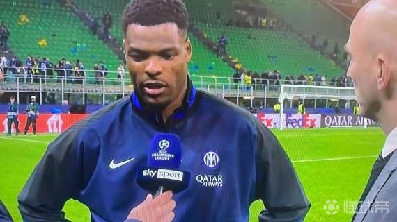 在这场足以载入史册的欧冠半决赛次回合比赛中,国际米兰在主场以加时赛4-3的比分战胜巴塞罗那,总比分7-6淘汰对手,成功闯入决赛。赛后,这场比赛中送出2次助攻的邓弗里斯接受了意大利天空体育的采访。